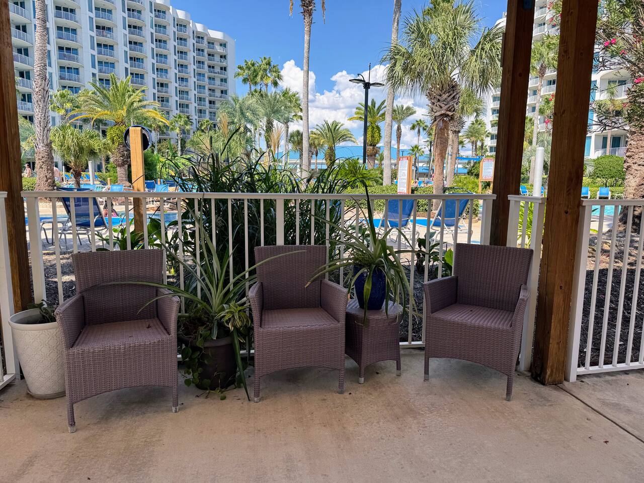 Entire private villa + all resort amenities with wristbands. Check-in at the main lobby Registration desk where you’ll receive parking passes, key cards, and amenity wristbands. With the wristbands you can access the pool and hottub. With the key fob you can access the workout facility/gym.
